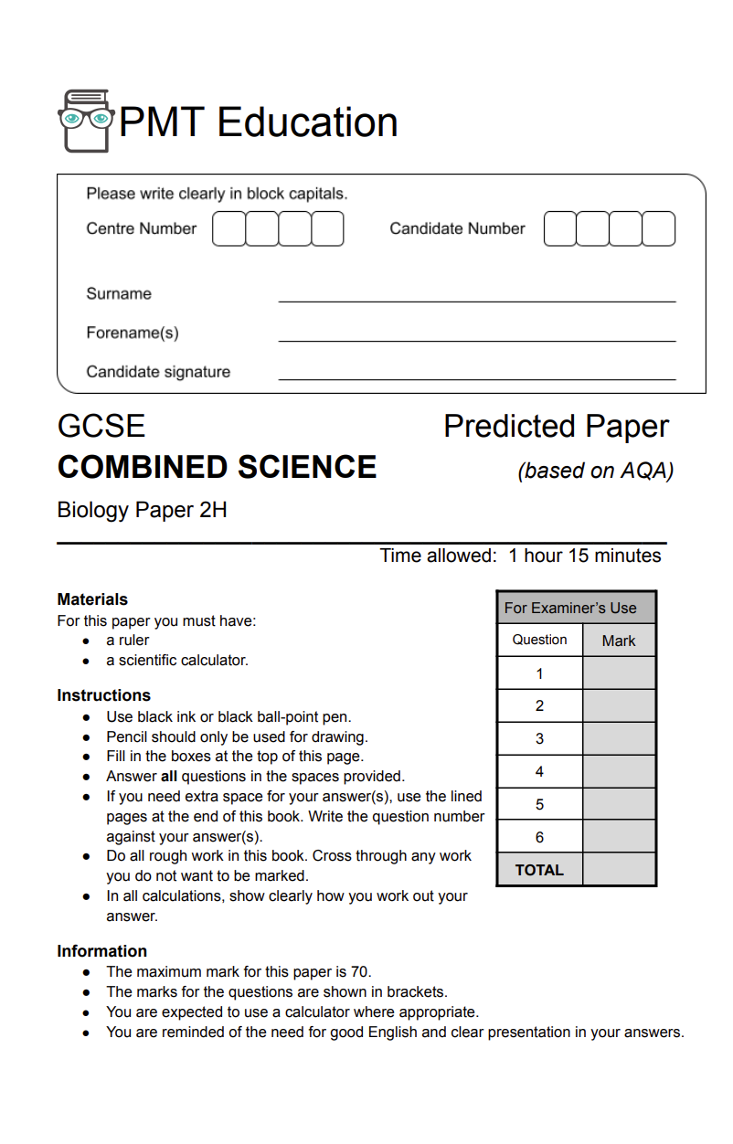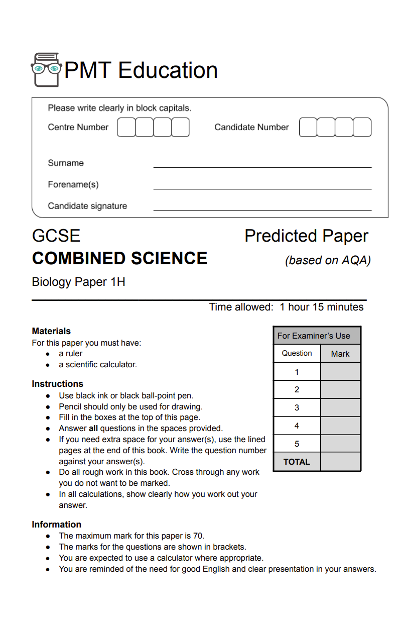 • Paper 1 Predicted Paper - AQA Higher Combined Science GCSE