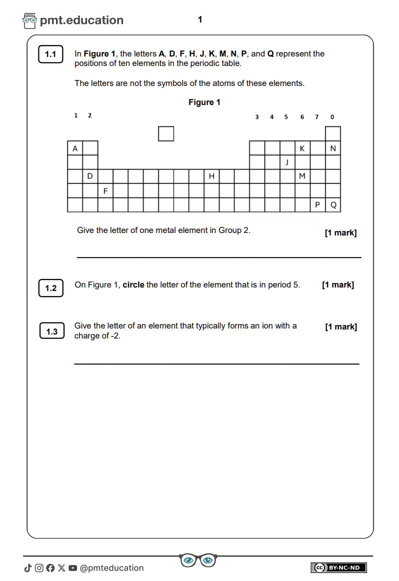 • Chemistry Paper 1 (H) Mark Scheme – AQA Combined Science GCSE 2025